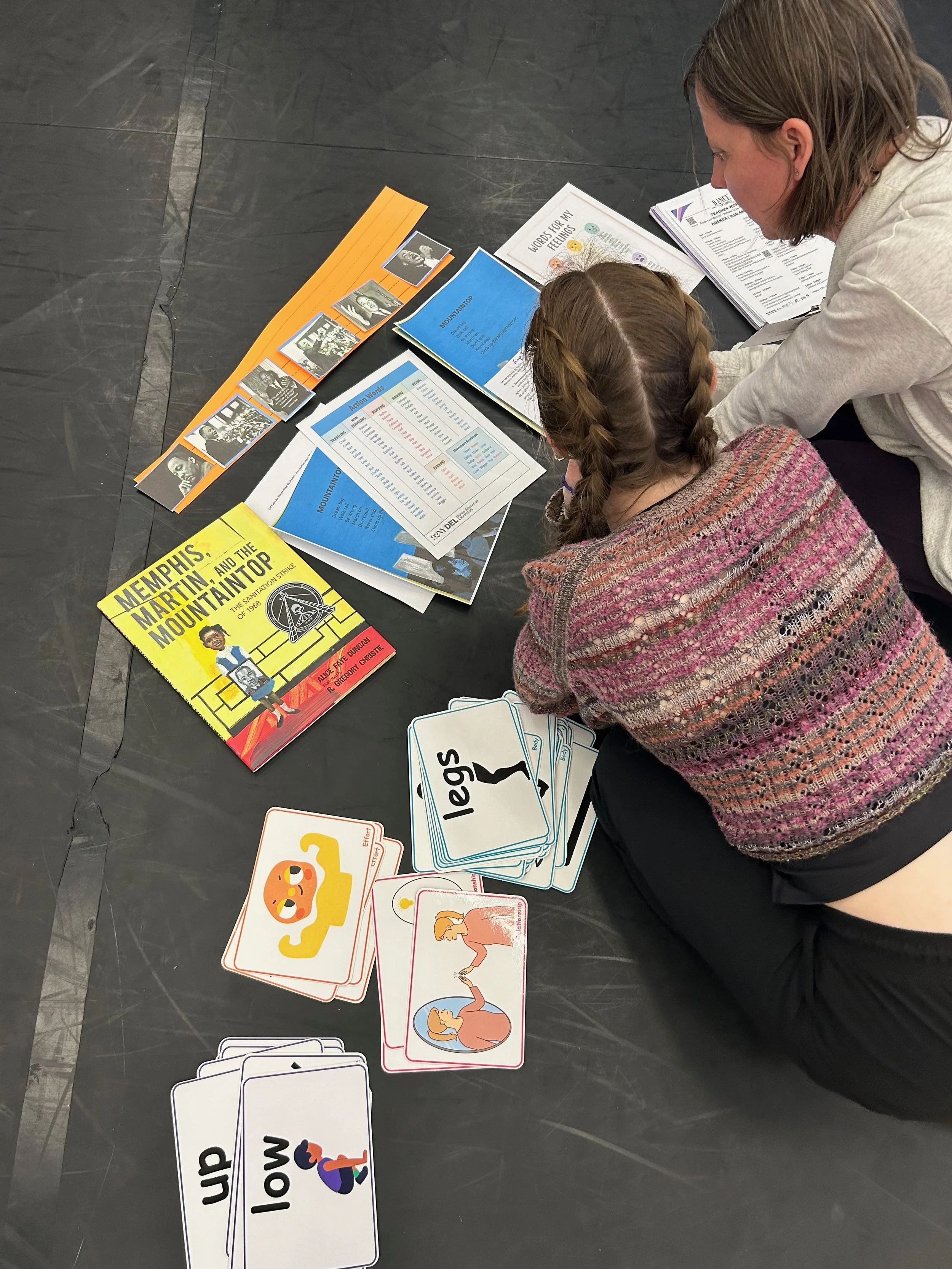 In February, I had the pleasure of leading a full-day professional learning workshop at The Dance Foundation in Birmingham, Alabama, for a dynamic group of arts educators, dance teachers, and teaching artists. This integrated arts workshop focused on bringing literacy to life through movement, drawing inspiration from Dr. Martin Luther King Jr.’s iconic 1968 “Mountaintop” speech and Collage Dance Collective’s RISE, choreographed by Kevin Thomas.