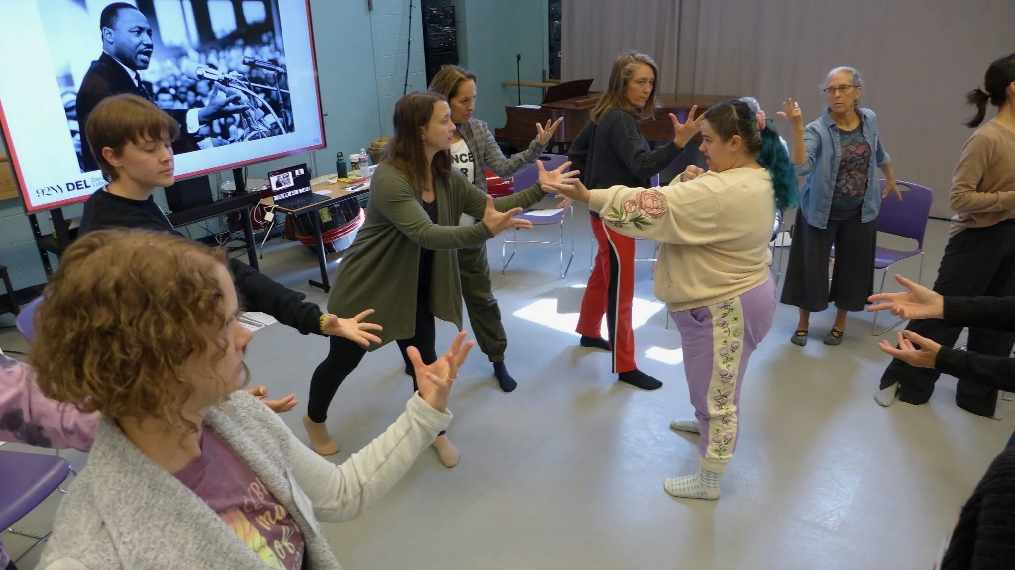 Words That Move Us! — A creative dance-making session inspired by Dr. Martin Luther King Jr.’s Mountaintop speech, where participants used text as a springboard for personal and collective movement expression.